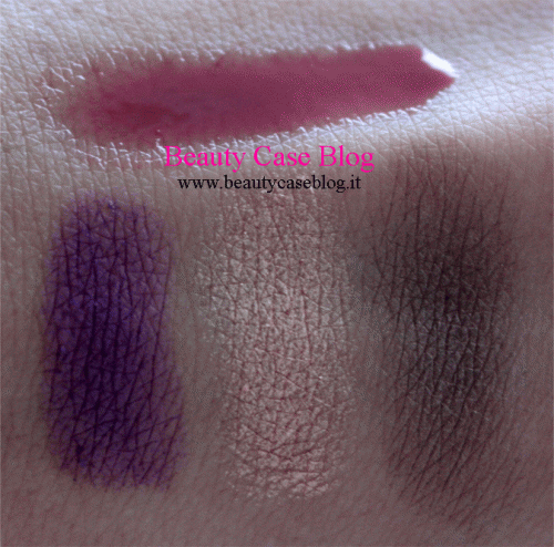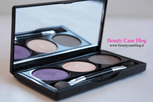 Il packaging della palette è comune a quello del blush e della terra descritti poco sopra: la superficie nera lucida è impreziosita dal logo del marchio, ovviamente in rosa. Il lato interno del coperchio è munito di specchio e le tre nuances proposte –viola, oro e verde militare chiaro– permettono di realizzare Make Up anche molto diversi tra loro. Si prestano ad applicazioni asciutte, per colori più soft, o bagnate, per un risultato più intenso.
