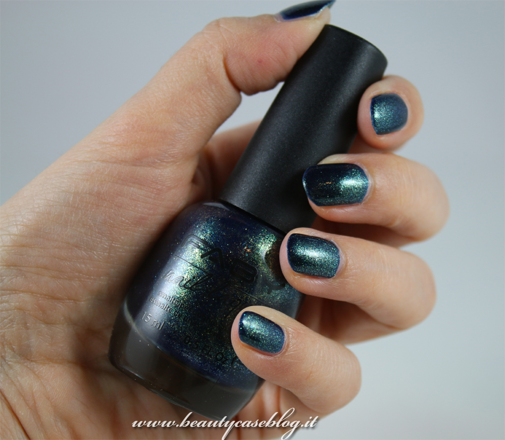 Nuit des mystères – Un blu glitterato d’argento e verde. Particolarissimo, rimanda alla profondità glitterata di un cielo notturno e pieno di stelle.