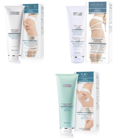 Da questo presupposto nasce la linea anticellulite di Pupa, i cui due prodotti cardine si rivolgono in modo specifico ai due principali tipi di cellulite: giovane o radicata; nel primo caso sarà opportuno un trattamento anti acqua, nel secondo uno lipo-riducente.